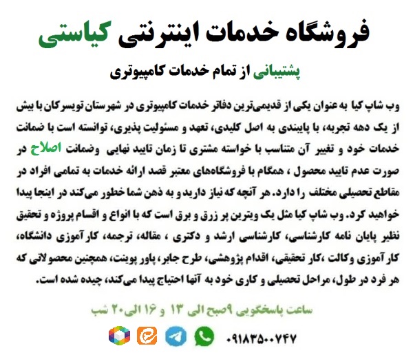 شماره تلفن تماس: 09183500747 علیرضا کیاستی