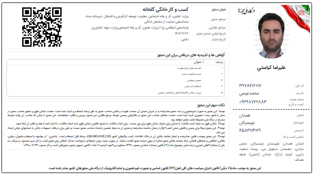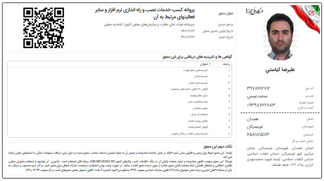 دریافت جواز کسب/ مجوزبهین یاب/کارت بازرگانی